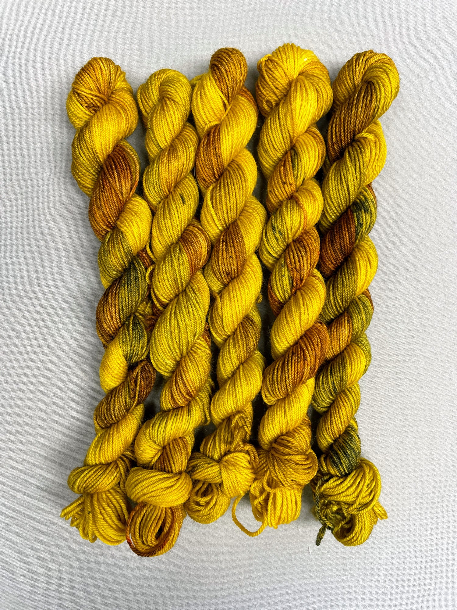 Variegated and semi-solid colourways on our Platinum DK Mini Skein Yarn Base...