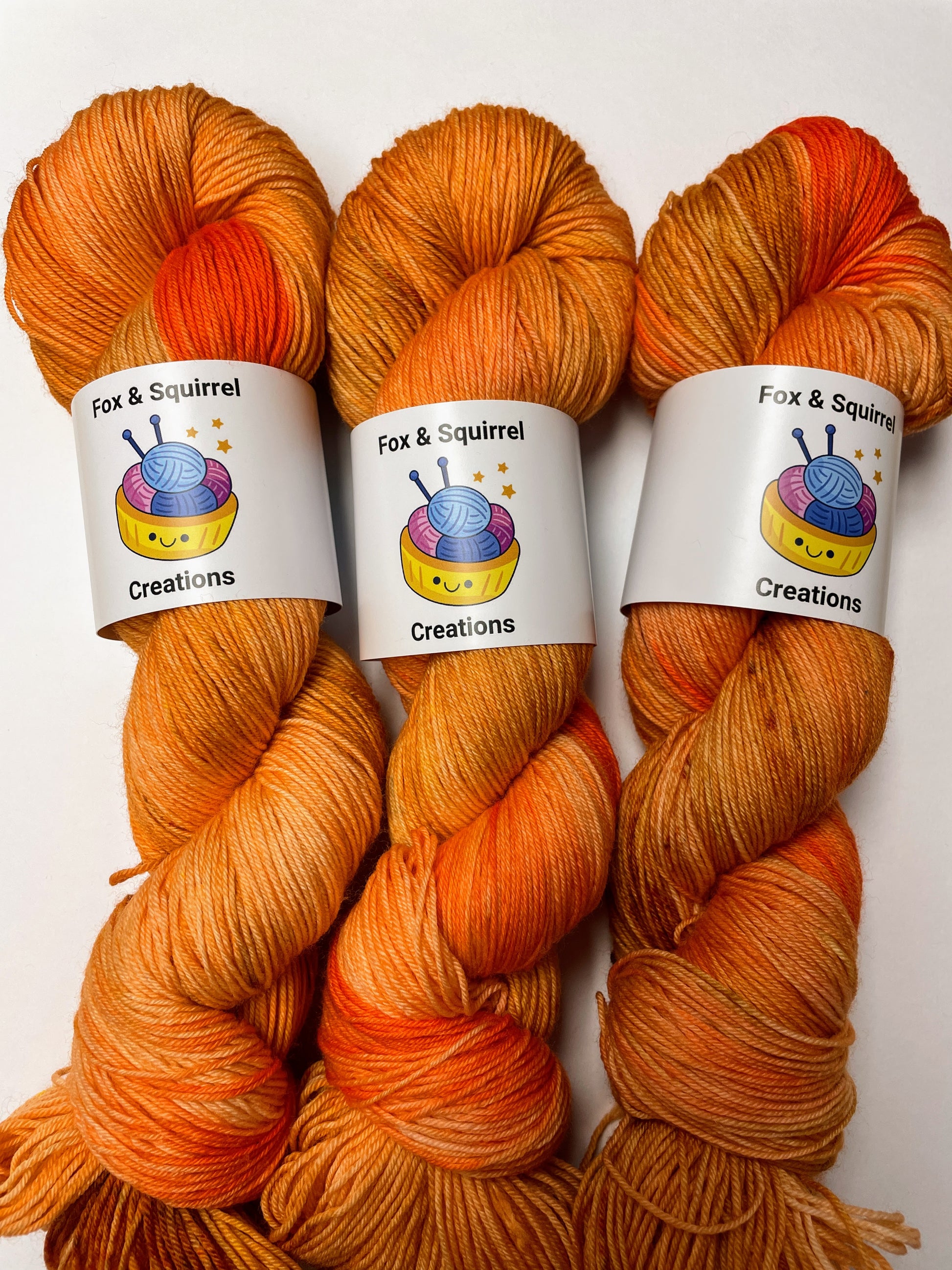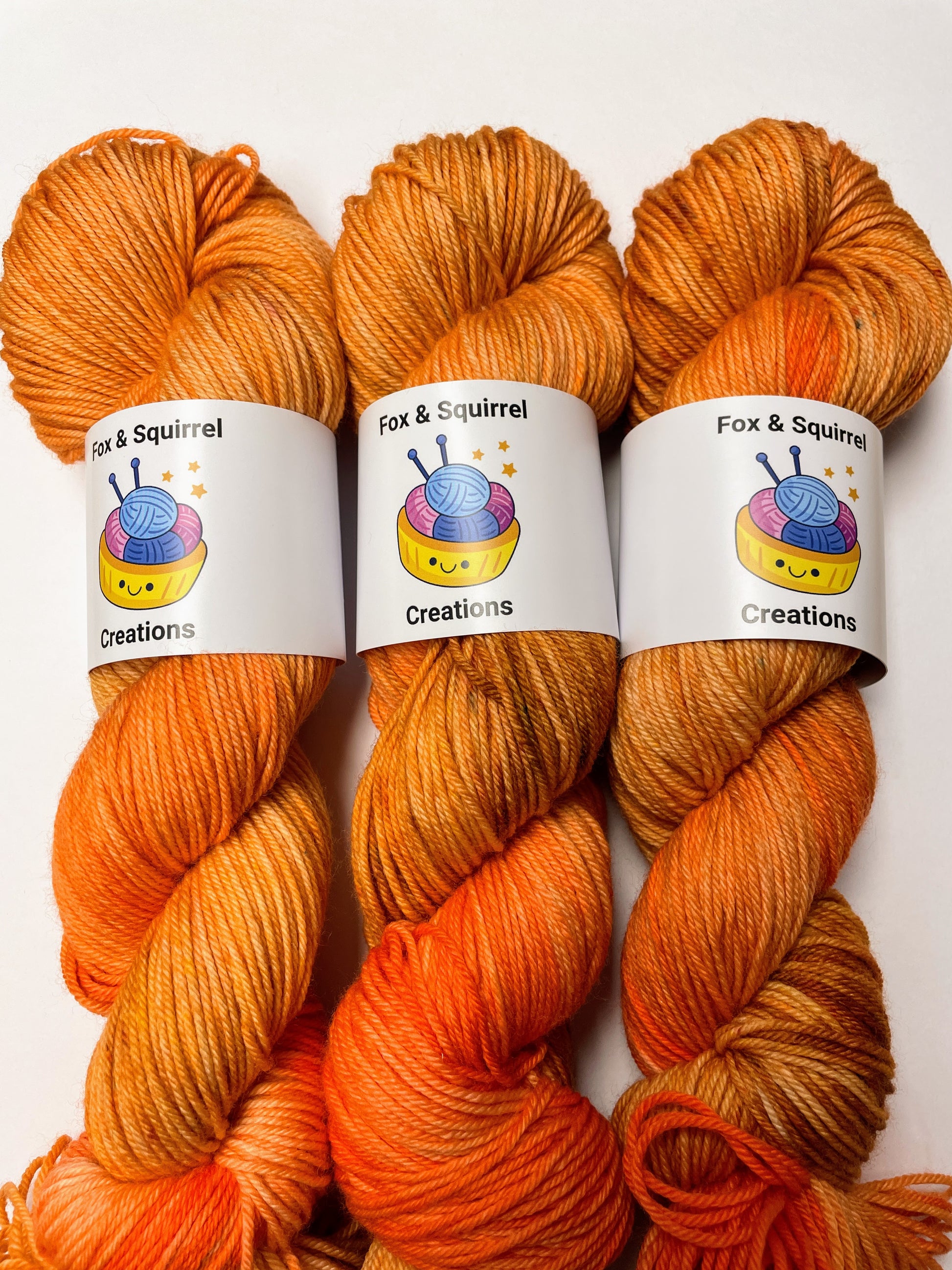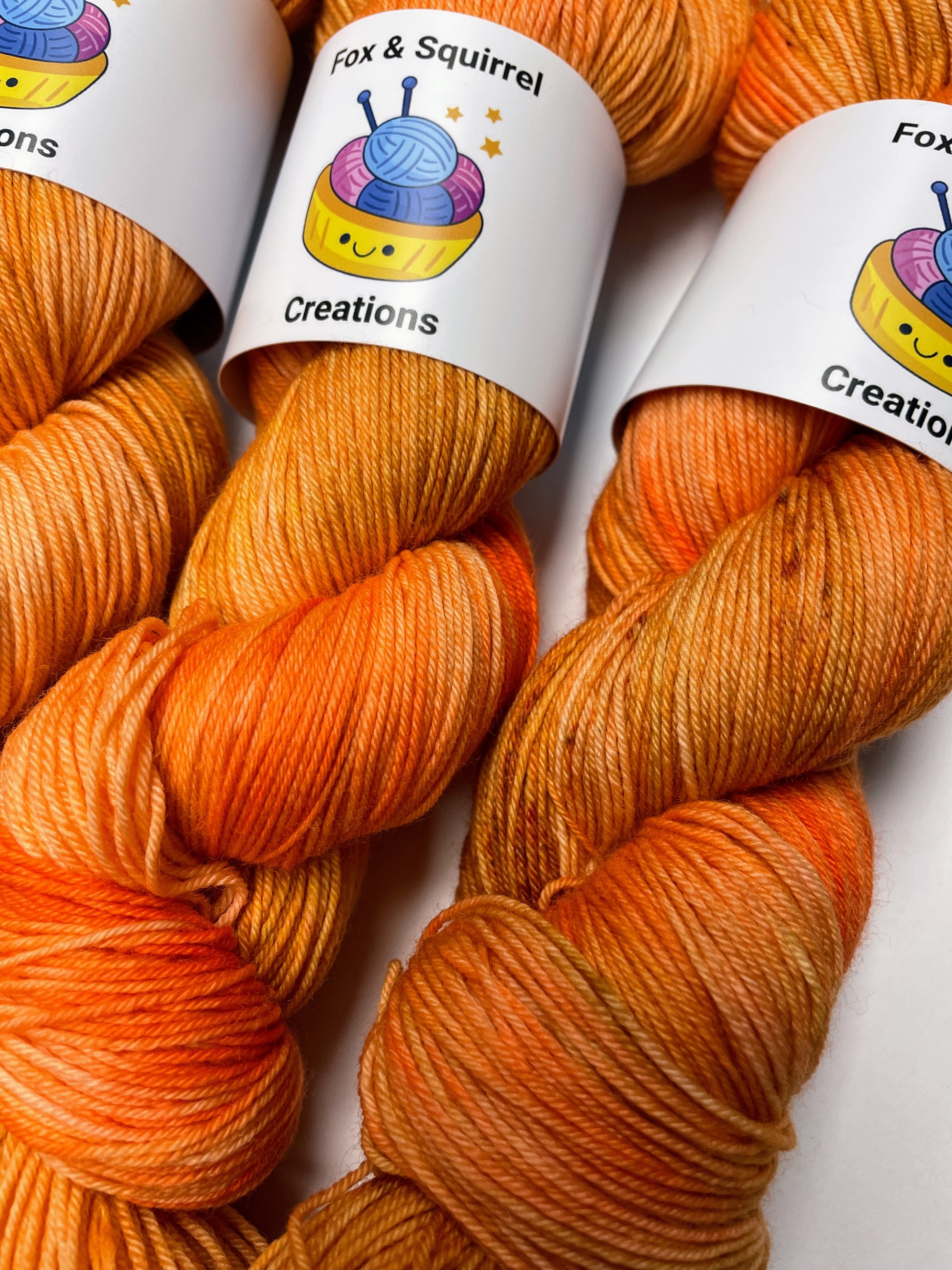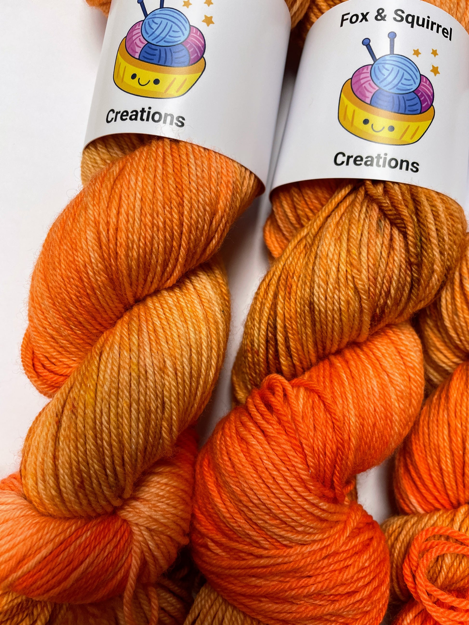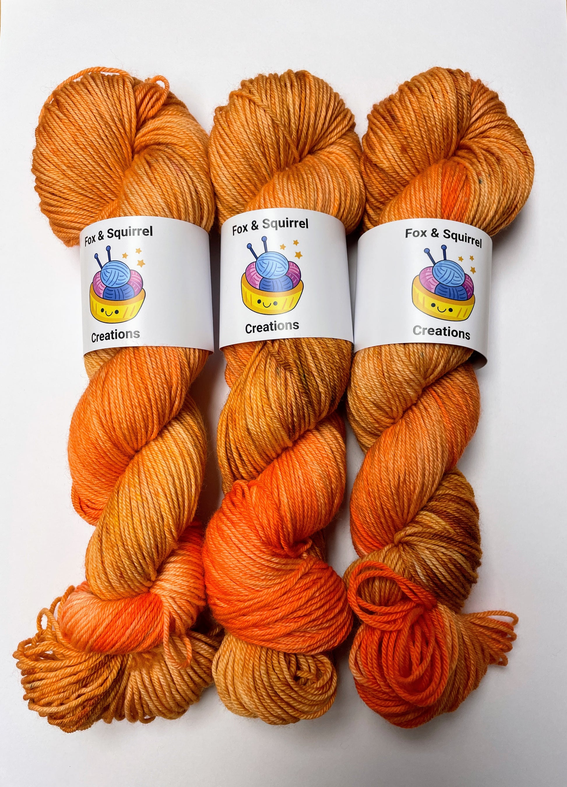Apricots is a variegated colourway with a base tone of Peach with layers of Neon Orange, Mustard, Saffron and Brown. A soft colourway with scrumptious orange tones throughout.