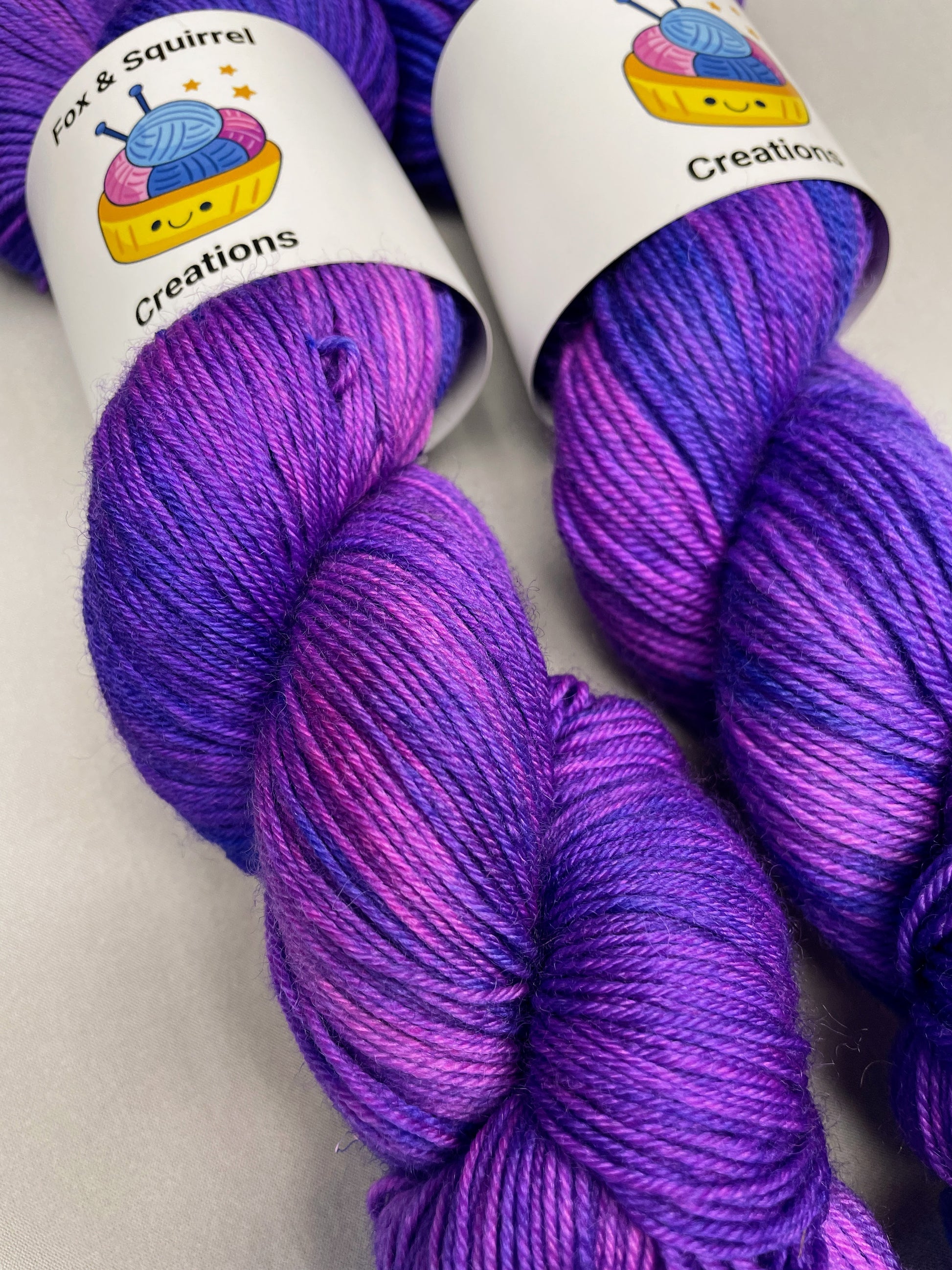 BFL 005 has a rich purple base colour with layers of electric purple and magenta. A tonal colourway full of purple tones that shouts foxgloves and thistle flowers throughout the hedgerow. Only one skein available on each yarn base.