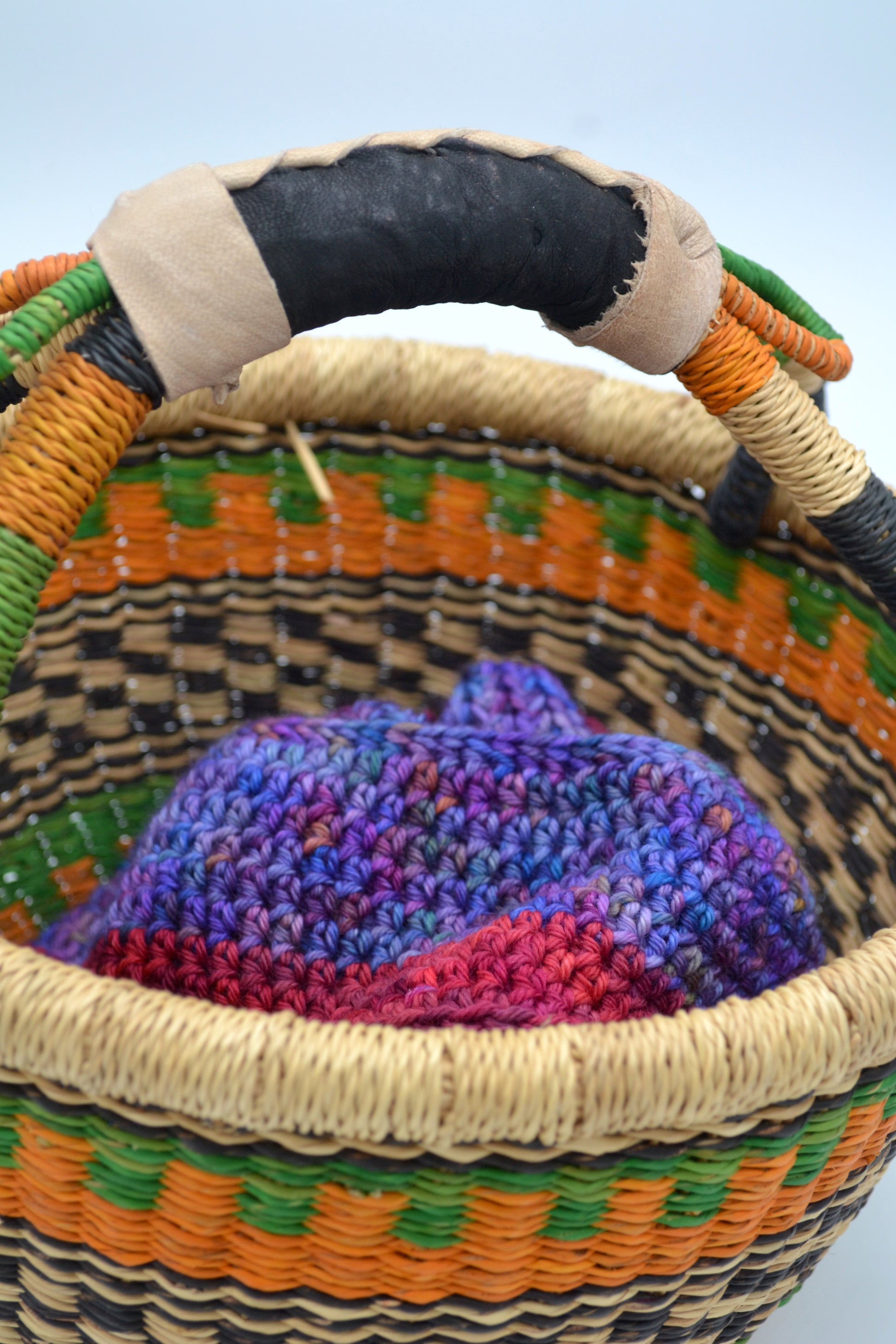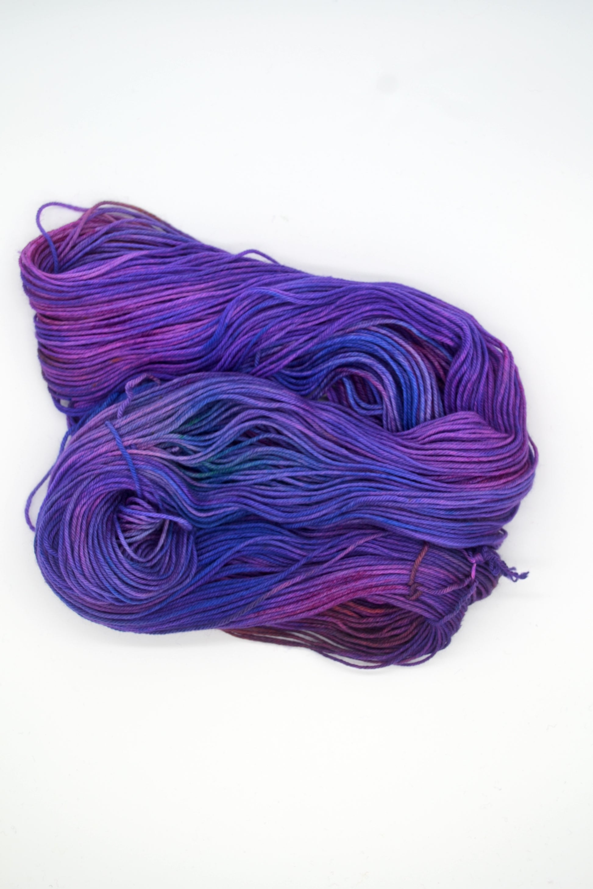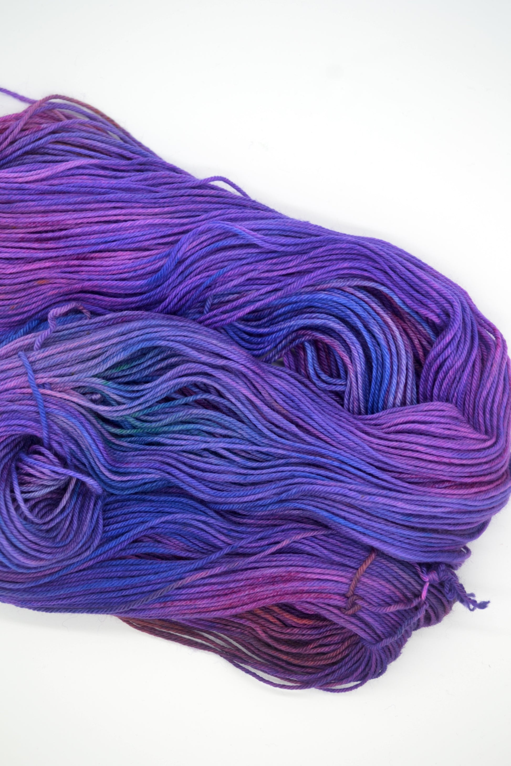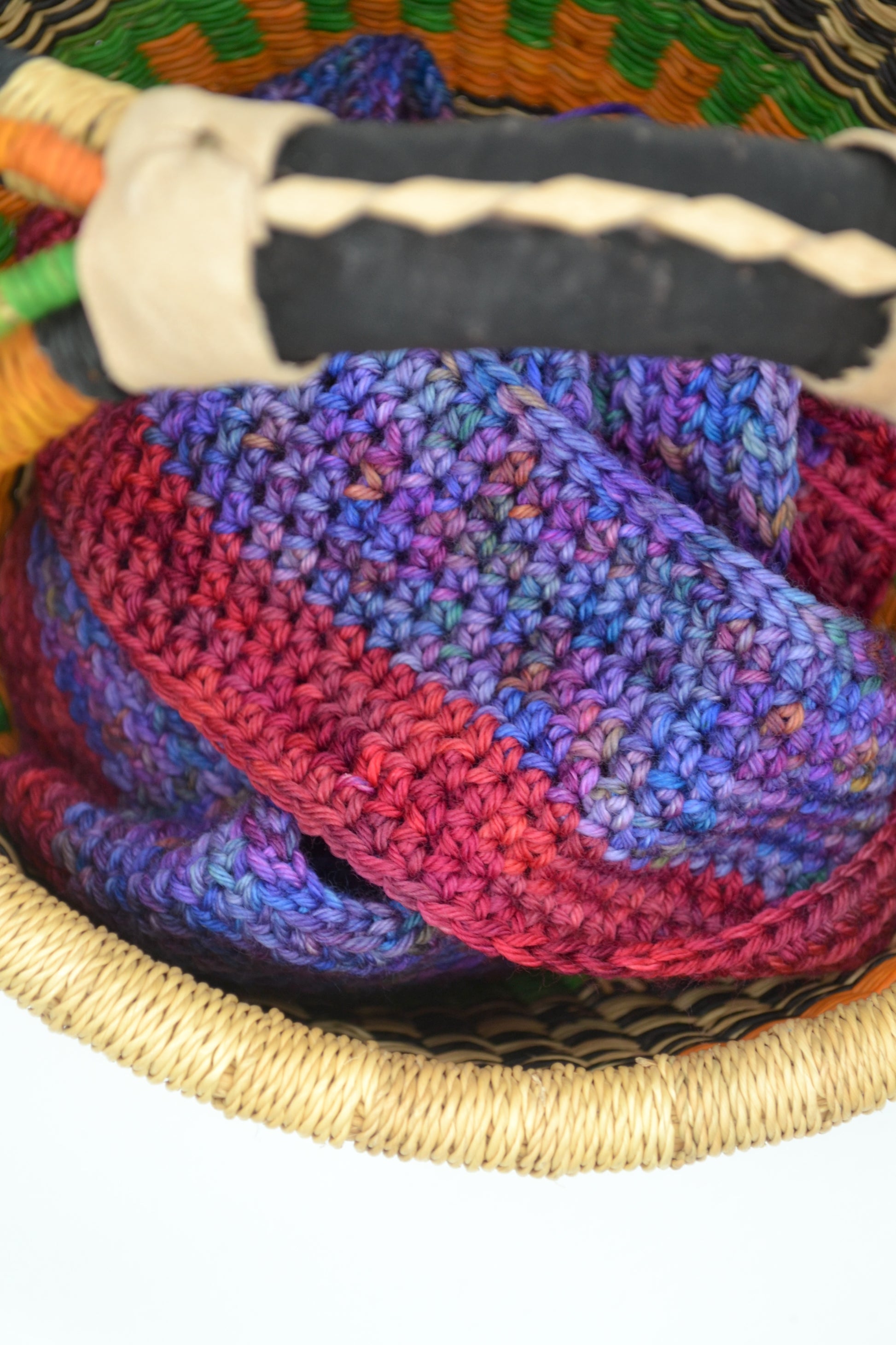 DK Merino/Nylon 034 is full of deep, jewelled tones, Purples, Blues, Pinks, Oranges and Green. A rich, jewel-like colourway full of colour and will add richness to any project, see the crochet cowl that has been made using this colourway.
