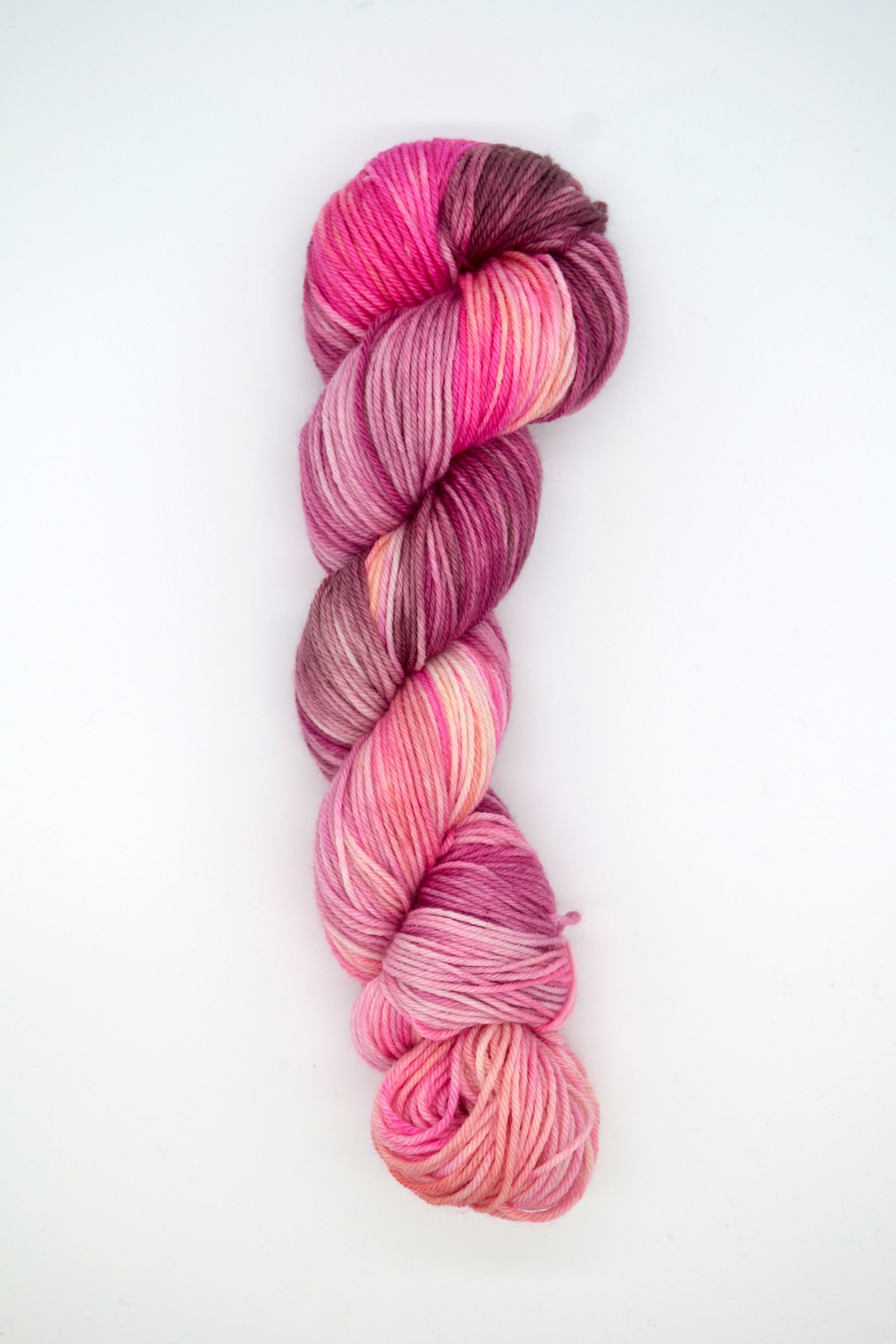 Pink Pony Club is a colourway full of Pinks and Peaches, inspired by Chappell Roan's Pink Pony Club song, playing on repeat whilst this colourway was being dyed.