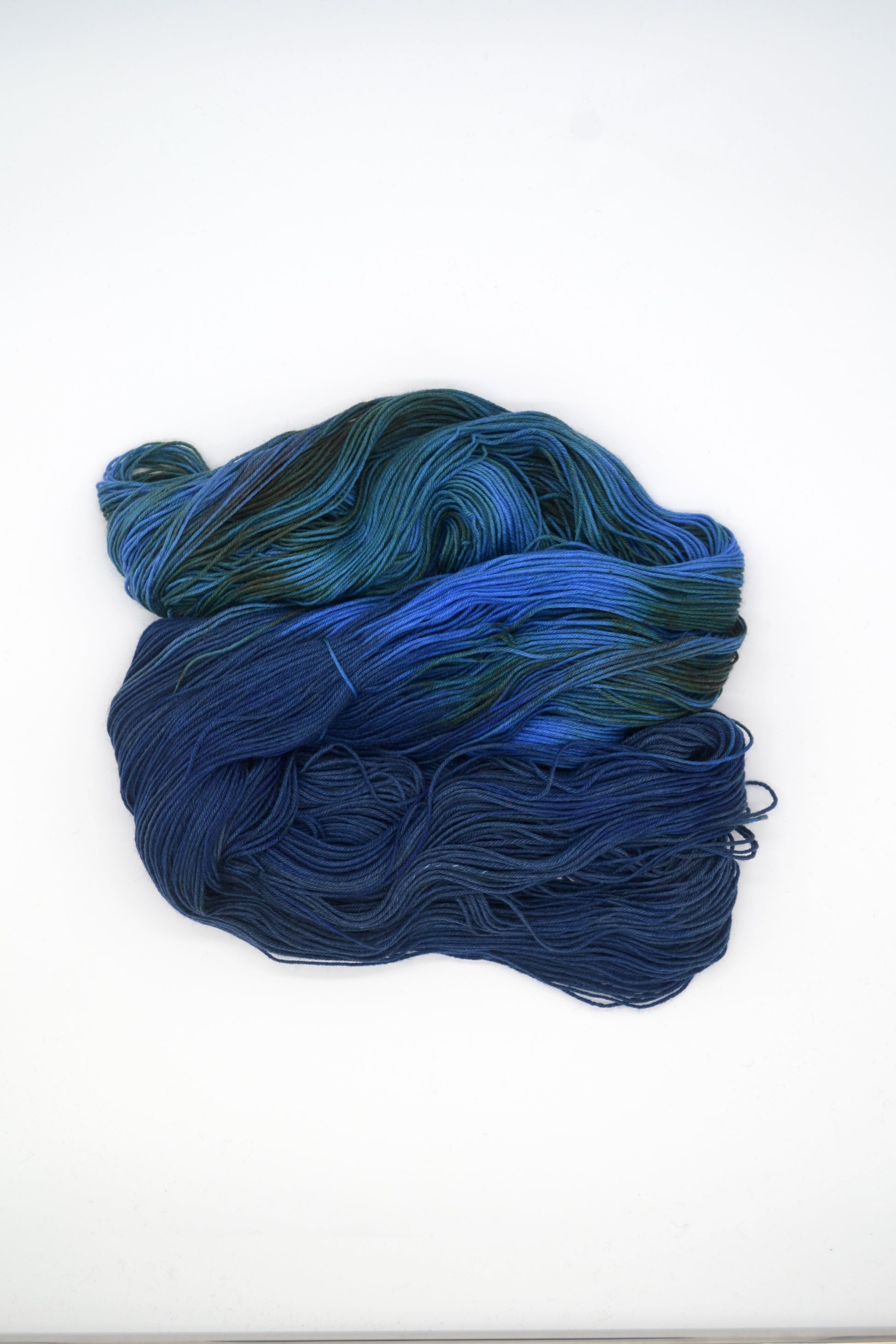 Sock Merino/Nylon 014 is a deep, rich blue colourway with layers of Navy and deep Green.