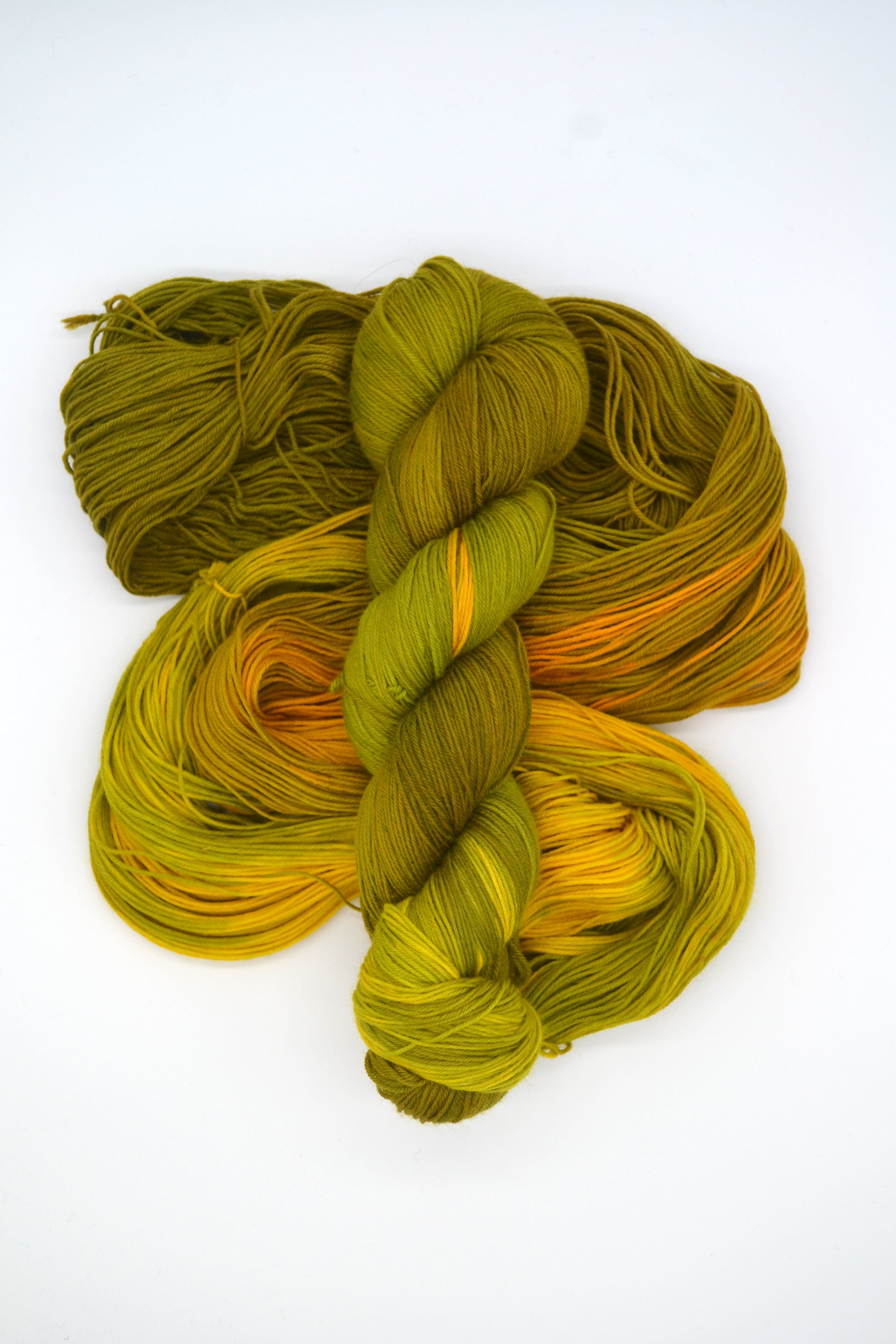 Sock Merino/Nylon 028 is a lush green variegated colourway with zingy shades of Olive Green, Mustard and Yellow. A zingy, fresh colourway that would add zest to any yarn project.
