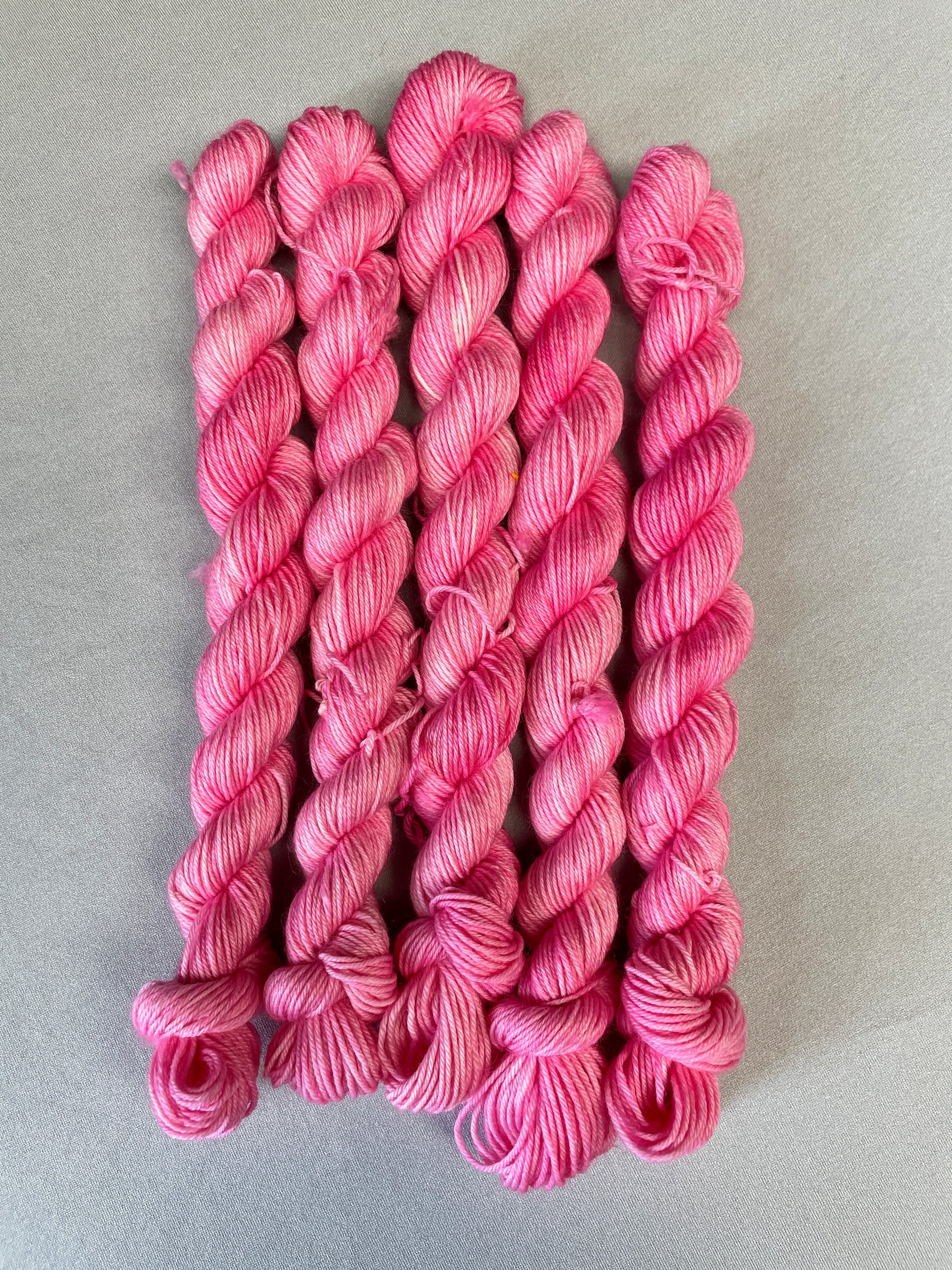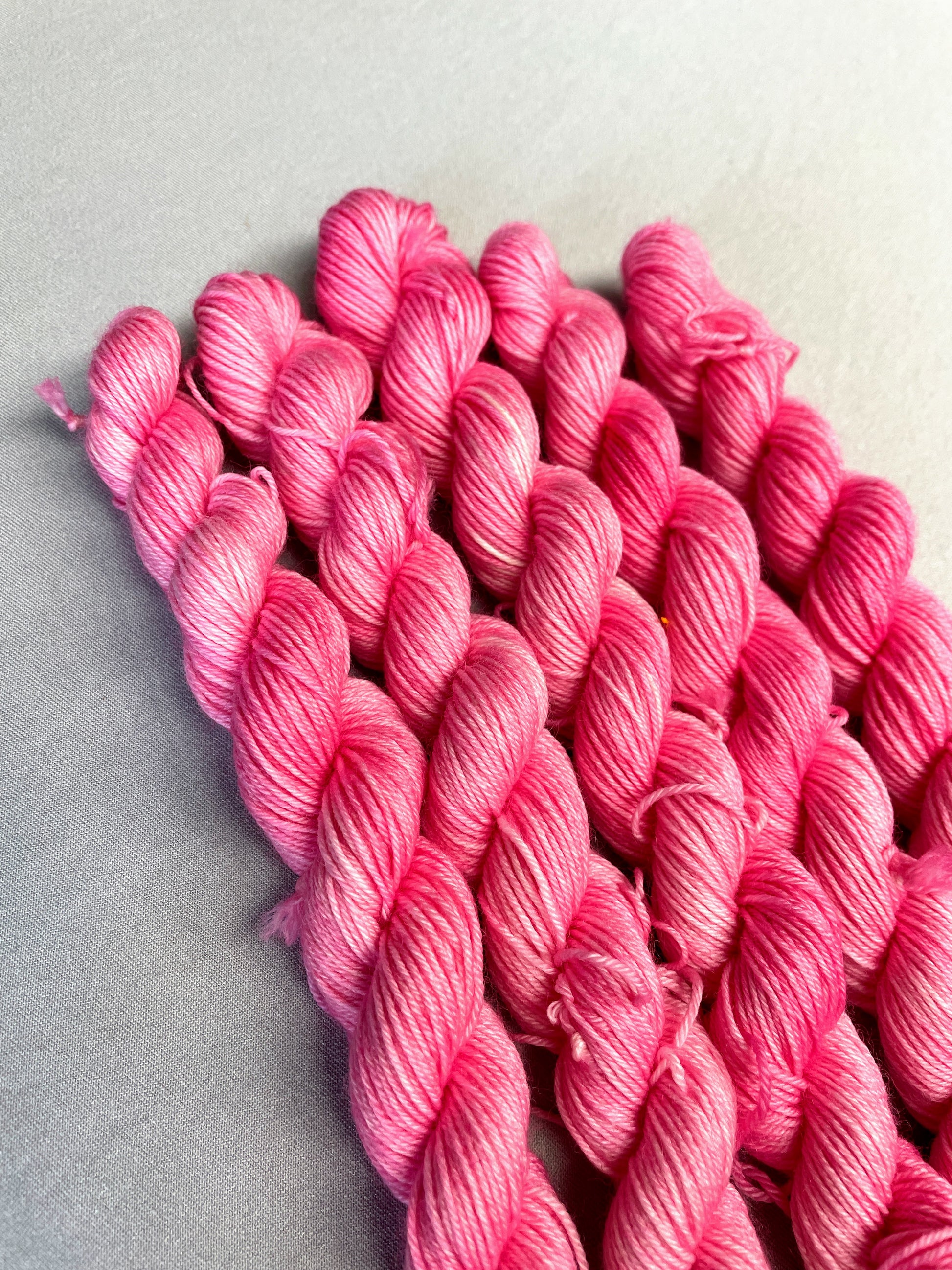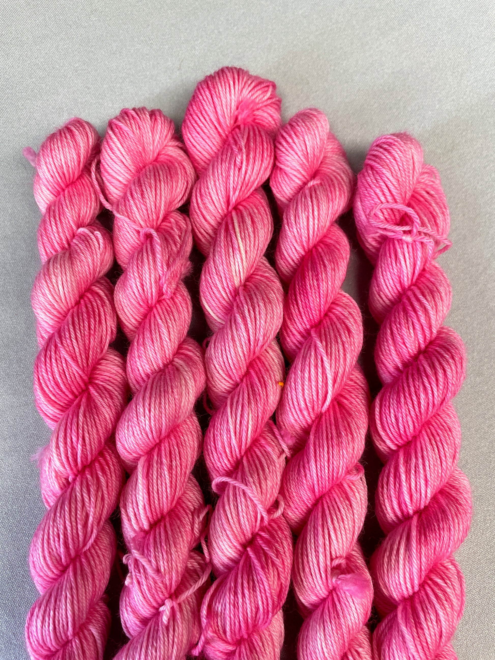 Candyfloss is a semi-solid colourway, in a pastel pink shade. Semi-solids pair well with variegated colourways or to add variation to a big project, they are great for contrasting heel and toes on a pair of socks.