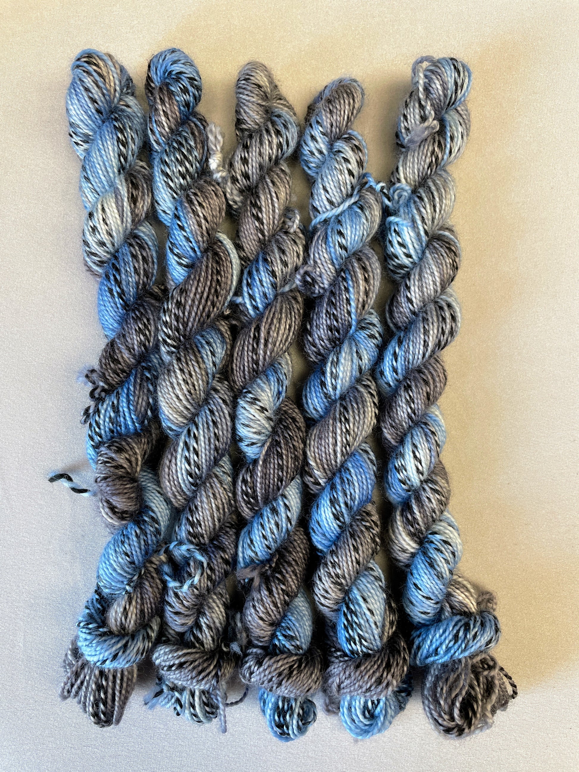 Storm Clouds is a variegated colourway with tones of Silver Grey and Baby Blue. A light colourway that pairs well with the Blue/Grey semi-solids.