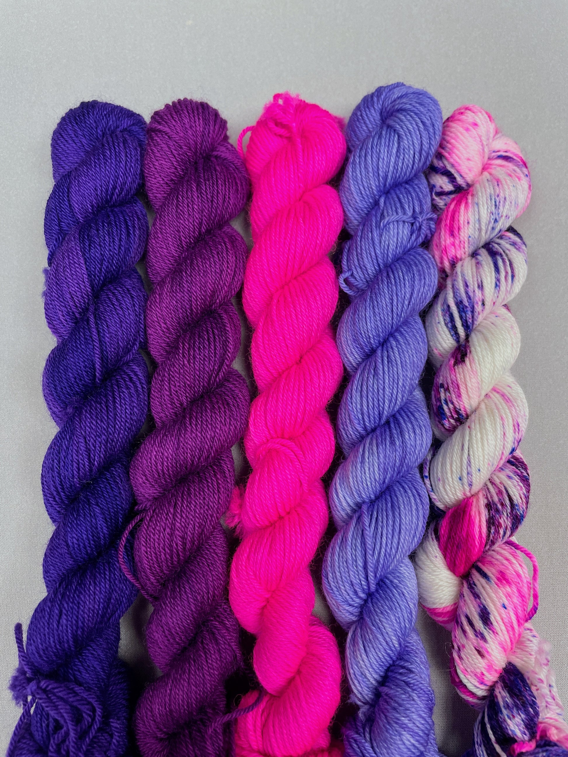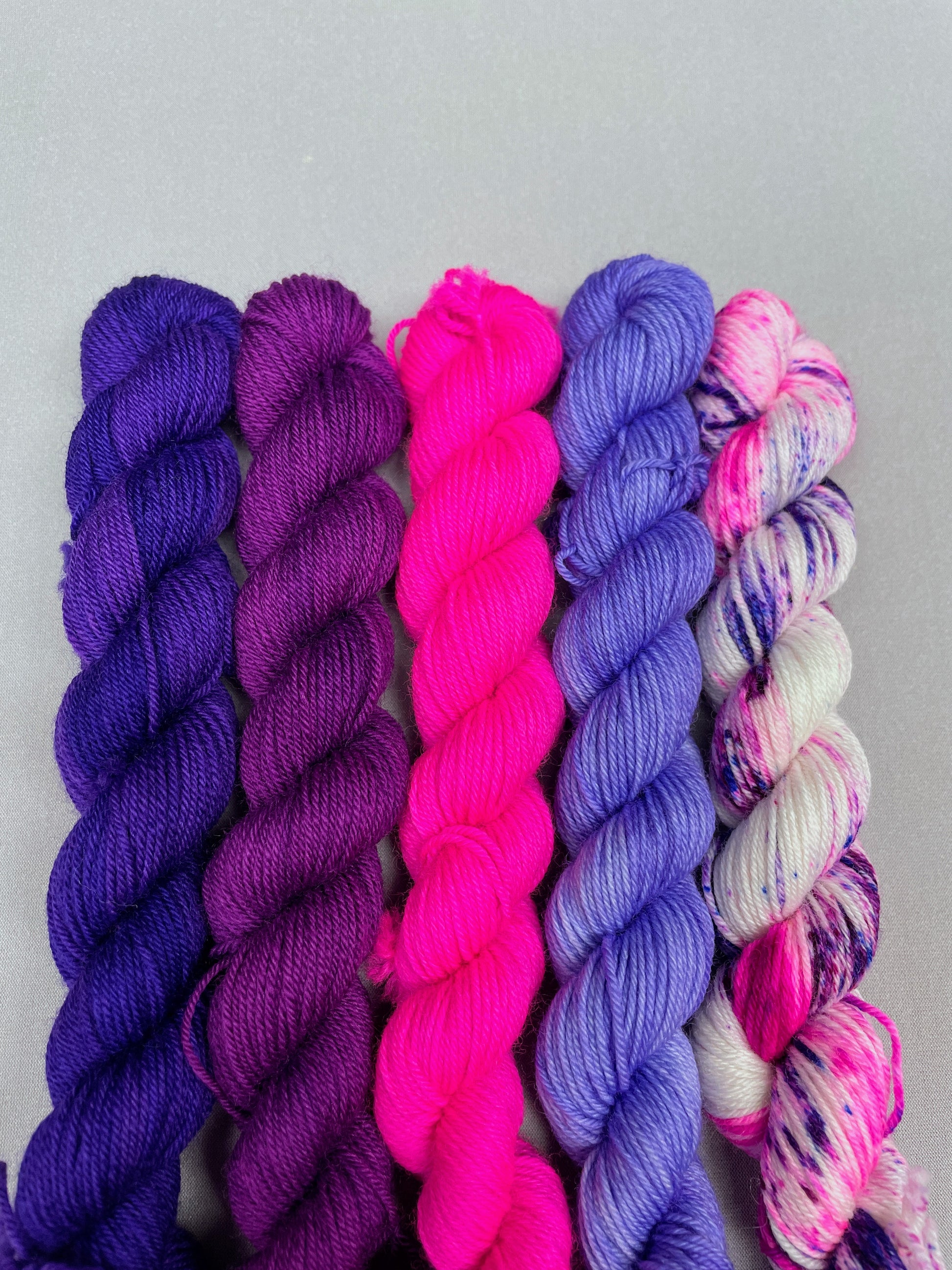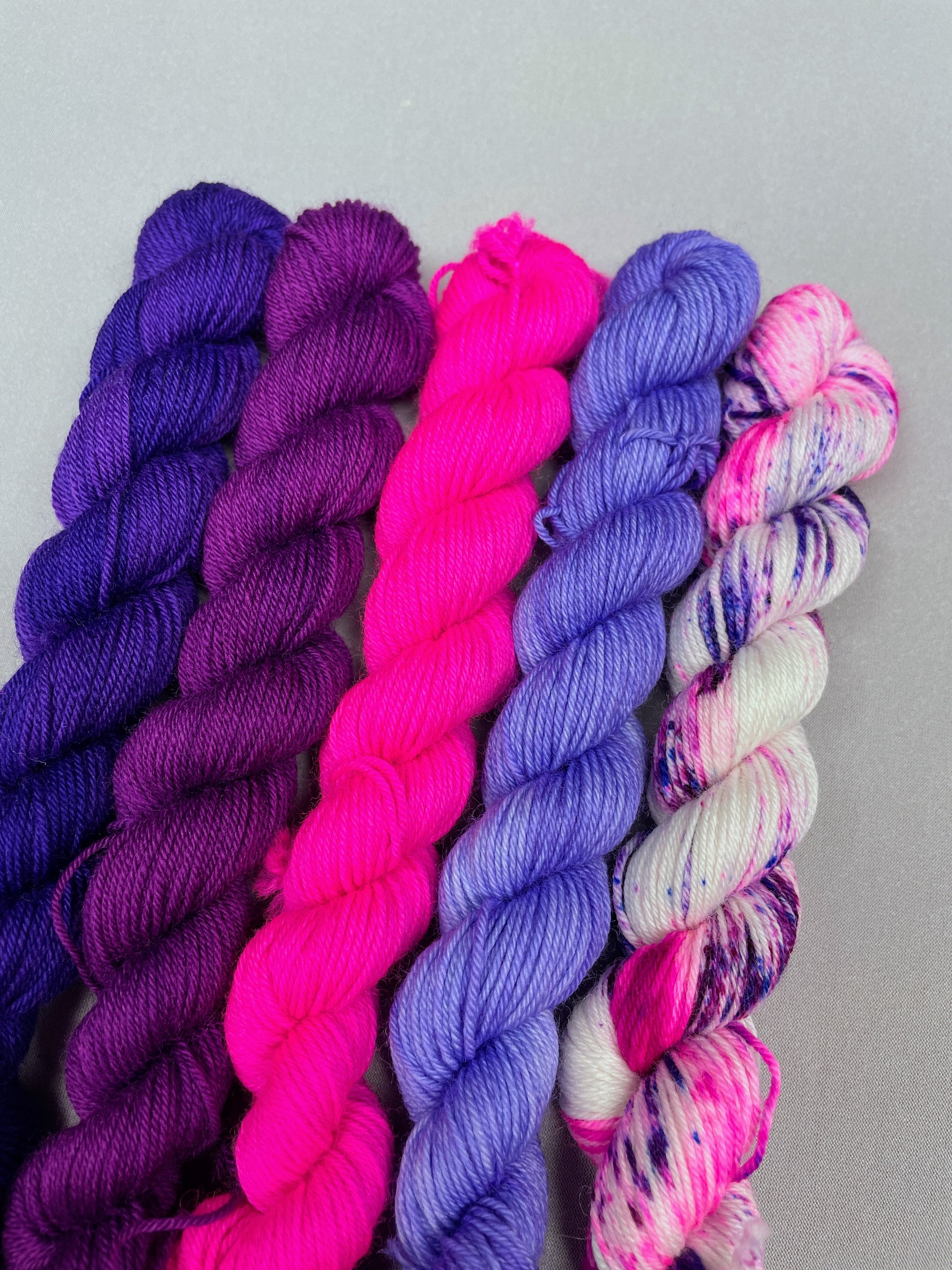 4 x 20g of Semi-solid colourways (Plum, Purple, Lavender and Neon Pink)