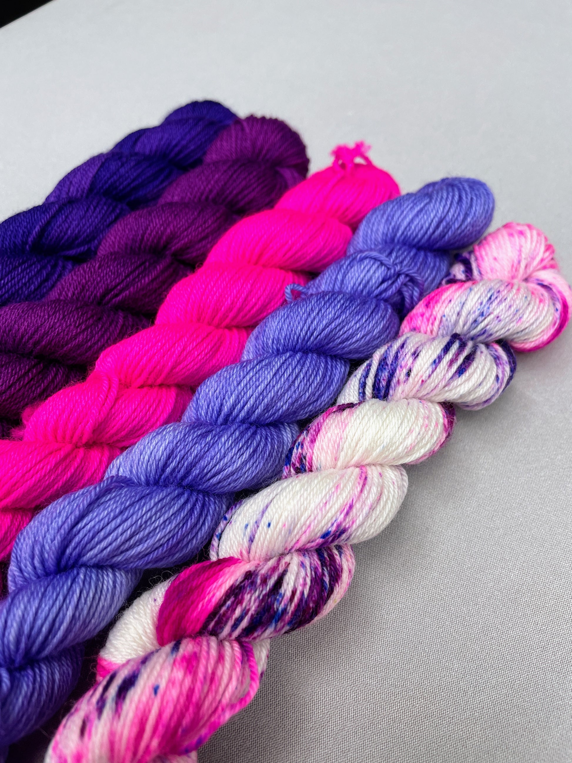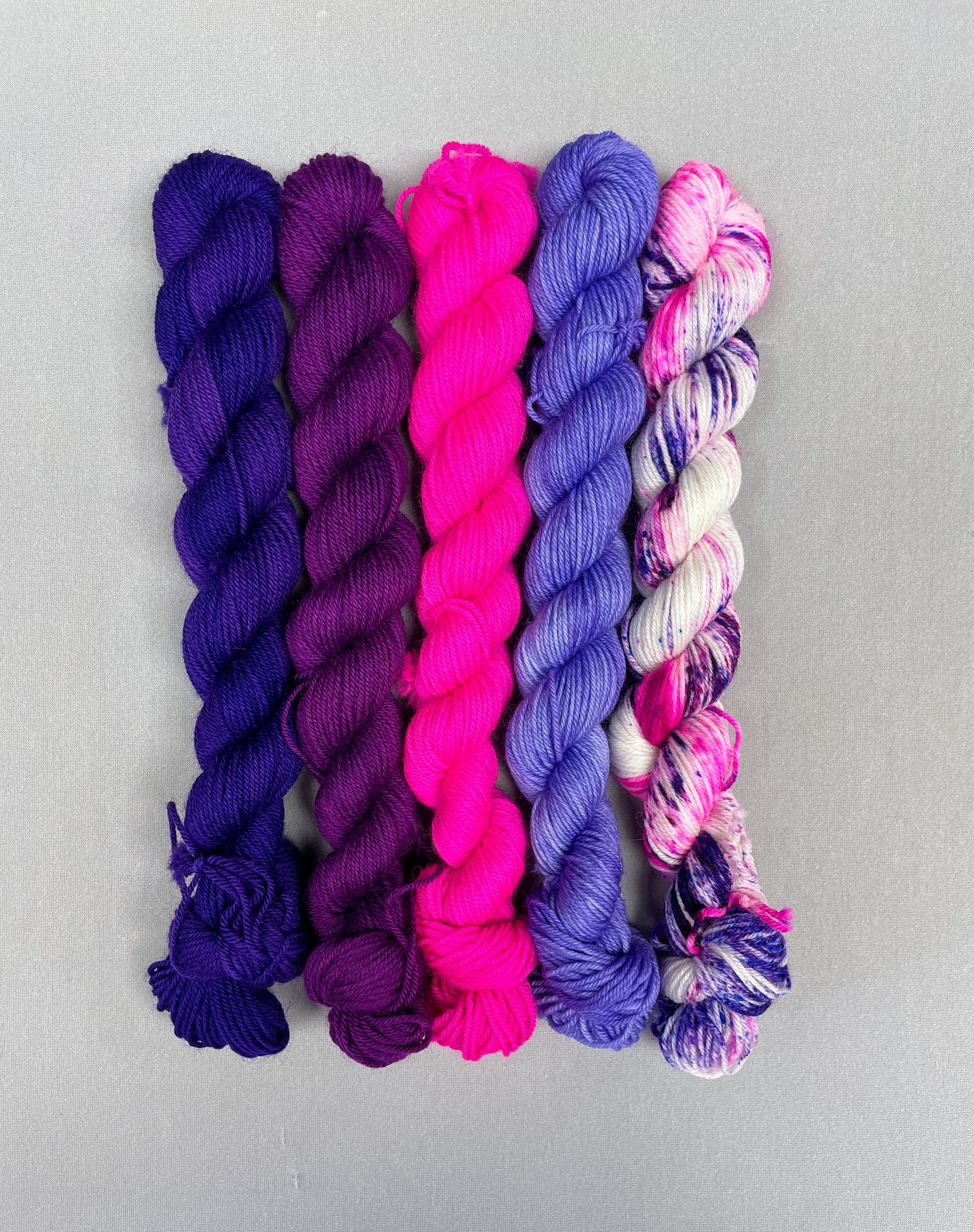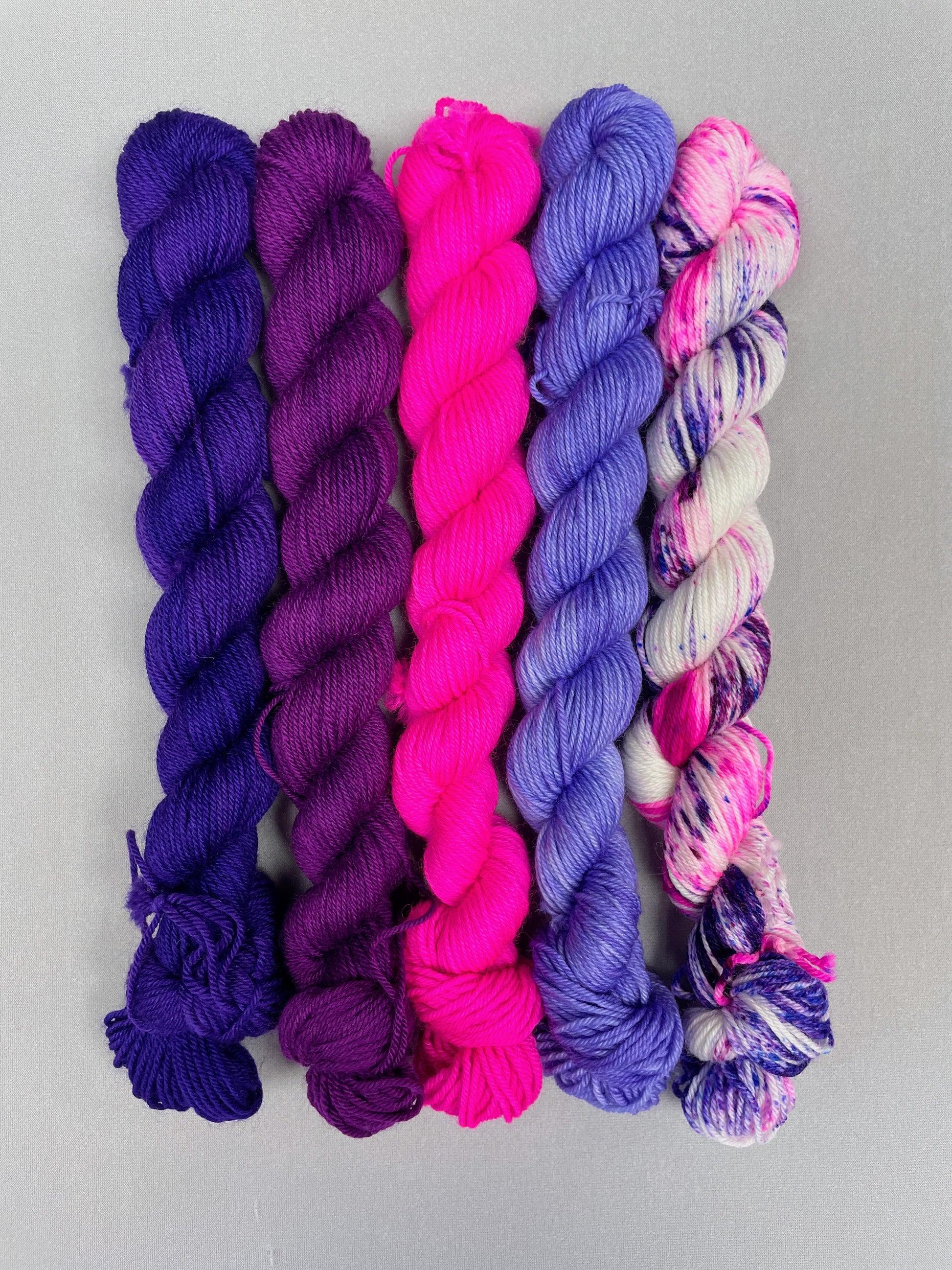 4 x 20g of Semi-solid colourways (Plum, Purple, Lavender and Neon Pink)